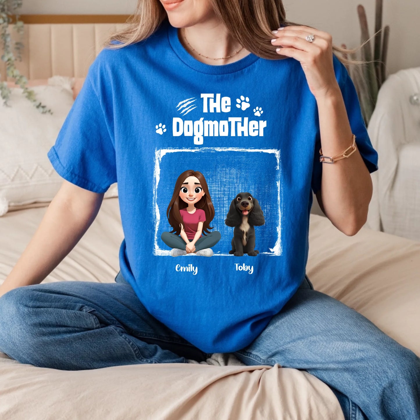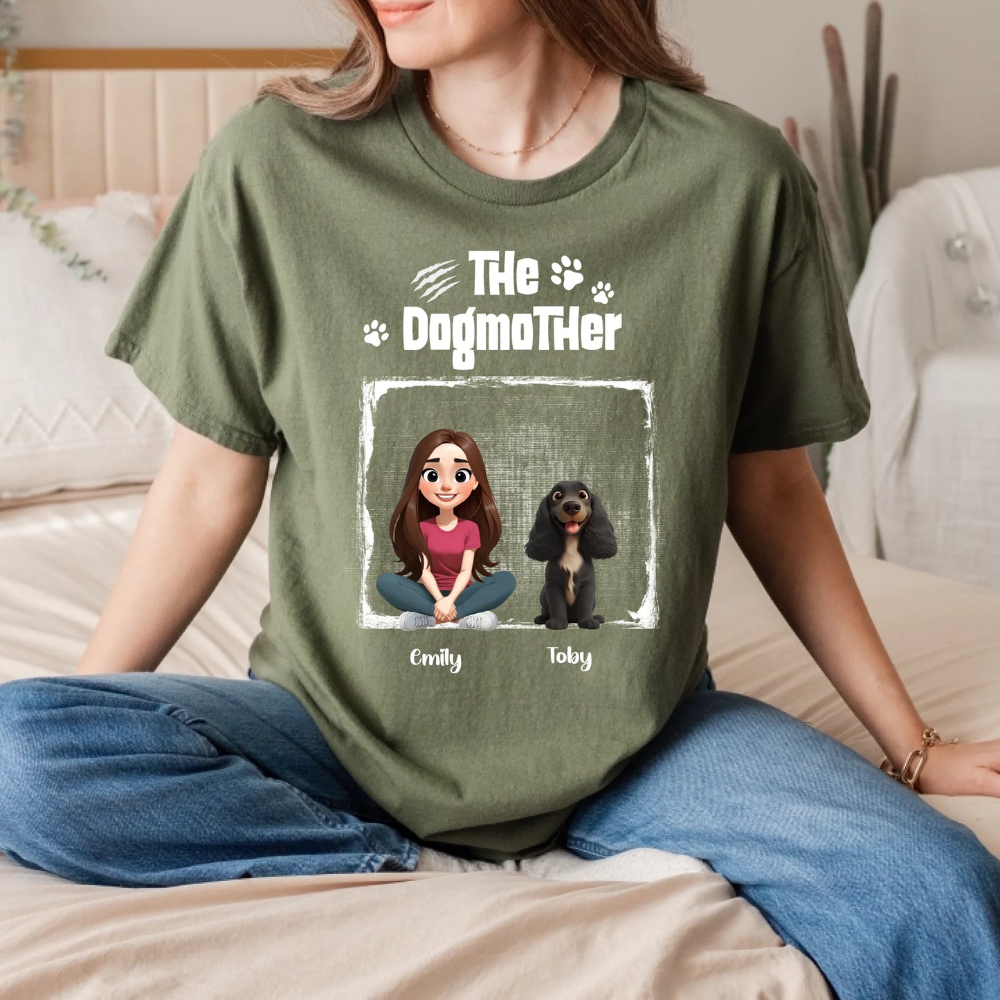 Custom Dogmother T-Shirt – Personalized Dog Mom Tee with Characters & Dog Breeds