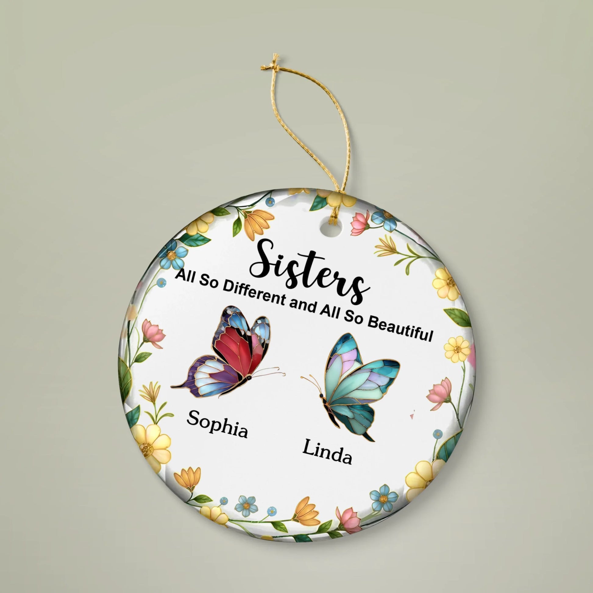 Personalized Sisters Ornament – “All So Different and All So Beautiful” | Custom Names & Butterfly Design