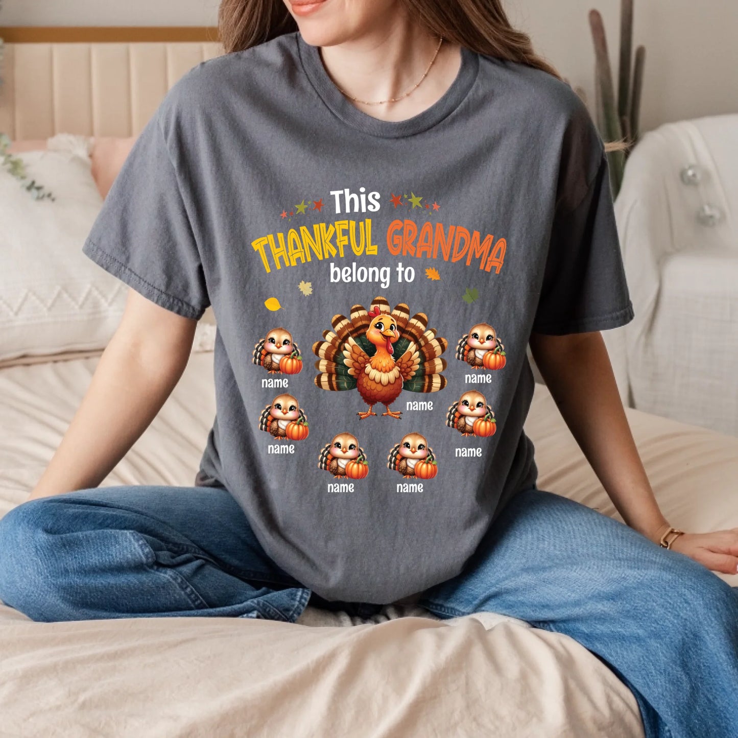 Personalized "This Thankful Grandma/Grandpa/Mom/Dad Belongs To" Shirt – Custom Grandkids’ Names – Thanksgiving Gift for Nana/Mama/Dad